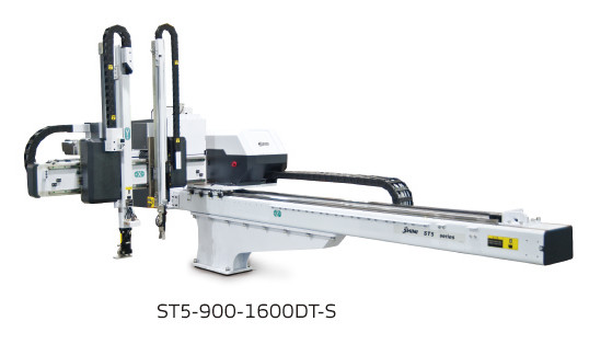 信易五軸伺服機械手適用於注塑成型時成品及水口料的取出,分為單截式與雙截式供客戶選擇,適用於二板模、三板模或熱流道模具。能實現各種特殊動作,如排列、堆放、品檢和埋入等。適用於鎖模力在850T以下的射出成型機。