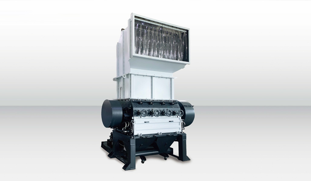 大型粉碎机的结构依据其使用的工况,分为多种不同的配置,适用于粉碎各种大型或厚壁塑料制品,包括注射成型、吹塑成型或挤压成型后产生的废料,实现集中粉碎,回收再利用。根据待粉碎料物的形状、材质、尺寸等,粉碎机的刀具结构可以做适当的调整,例如空壳类的大体积塑料制品,可以减少刀具的排数,以增加粉碎室的有效空间,便于刀具抓取并粉碎制品;对于实心厚壁材料,则可以增加刀具排数,提升单位时间内刀具的切割效率,提升粉碎产能。
