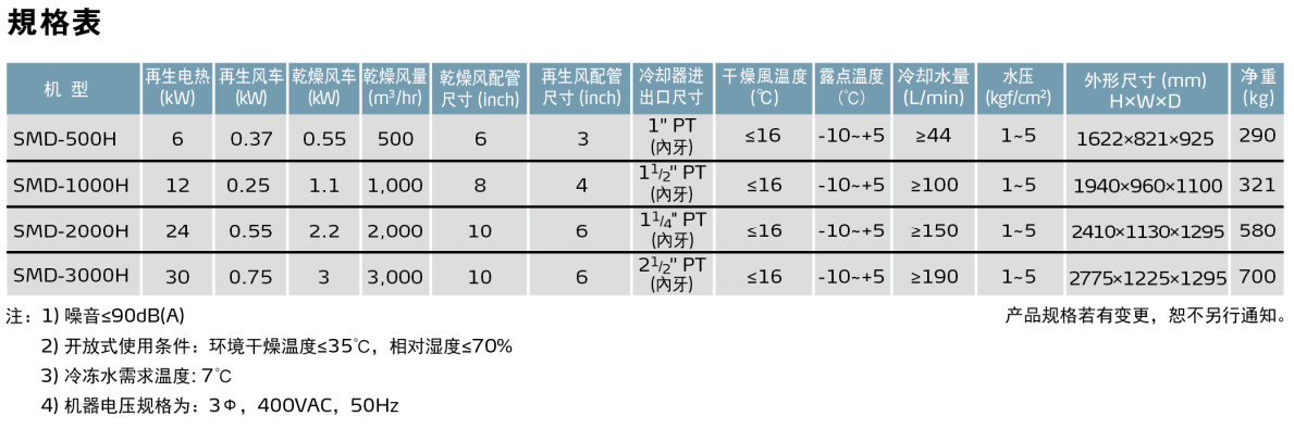 SMD-H系列目前有4个型号,分别为SMD-500H,SMD-1000H,SMD-2000H,SMD-3000H,可提供至多3000m3/hr风量,满足各种不同快速塑料成型工艺的实际需求,保证塑料制品的品质。