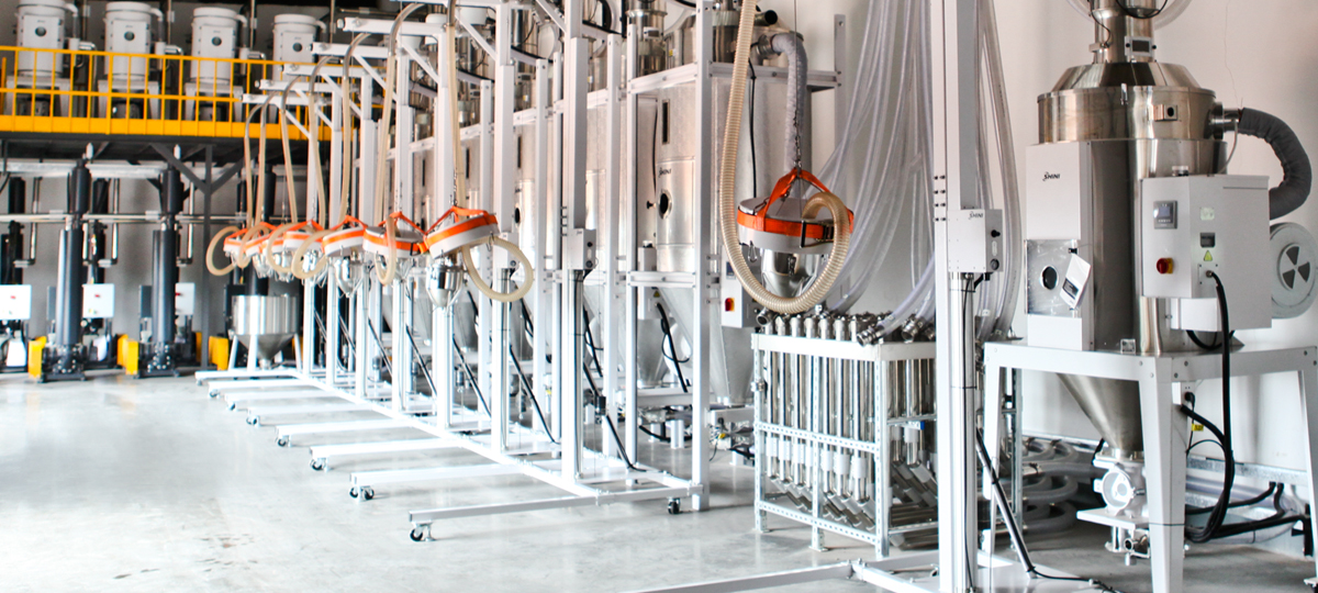 湖南某知名企业主要生产农业领域使用大型非标储物箱。基于生产的考量,为了更好的满足产业链的强劲需求,经过全面的论证及评估,该公司与信易集团东莞工厂-东莞信易电热机械有限公司合作,实施塑料成型配套装备的整厂解决方案,包括中央原料处理系统、机械手、模温控制设备及热流道方案等产品,共计服务于24台注塑机,机器规格分别为3台1400T、10台2100T、及11台2400T。