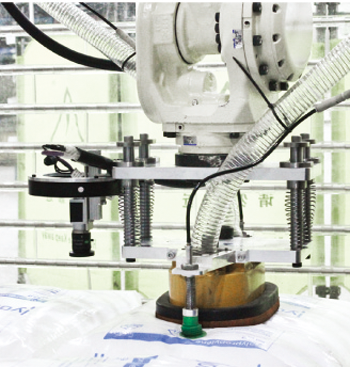 During first phase of the conveying system, 17 sets of injection molding machines were planned in workshop A. There were three kinds of materials used in the system: the ABS and two kinds of PP materials, which were packaged in 25kg per bag. Shini Robot cut open the material bag for feeding. The customers only need to stack the materials in specified place in central material room. After system visually perceived the required material, Robot will carry the material to correct hopper for feeding.