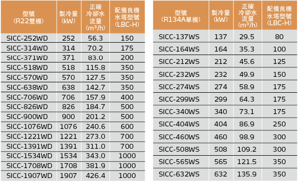 在使用水冷式冷水機時,為了保證冷水機能夠正常地持續工作,就需要搭配合適的冷卻塔進行散熱。冷卻塔的選型,就是根據製冷量的大小選取搭配相當散熱量的冷卻塔。冷卻塔主要負責將蓄含在冷卻水中的熱量向環境中散發出,以達到冷水機冷卻水進水降溫的目的。選取合適的冷卻塔就是選取合適的冷卻水水塔散熱能力,以滿足與之搭配的冷水機的負載熱量需求,為冷凝器提供降溫,以防止冷水機發生散熱不足,引起冷凝器高溫,出現高壓過高的風險。