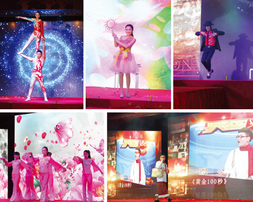 報告結束後,現場進行了當晚的第一次抽獎,中獎的同仁個個喜笑顏開。同時香噴噴的菜肴也在這時由工作人員流水般地送上桌來,斟上醇香的美酒,同仁們開始推杯換盞,互道祝福,舞臺上的節目也精彩紛呈,熱辣的桑巴、奧妙的變臉、精彩的雜技、奇幻的魔術、夢幻的泡泡秀,讓全體同仁大開眼界,看的大呼過癮。幾個精彩的節目過後,陸續抽出當晚設置的其他獎項,當特等獎的電視機抽出時,中獎同仁欣喜興奮的上臺領獎,台下一片掌聲雷動。最後抽10個1000元的特別現金獎時,被唸到名字的同仁高舉著手,大聲應答著高興地沖上舞臺領獎,同仁們也再一次報以熱烈祝賀的掌聲。接著,又呈上精彩的舞蹈表演……