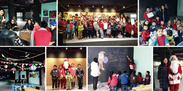 在2015年聖誕節前夕,教室的第一期活動共有30位信易員工的子女報名參加,報名參加的孩子們最小4歲,最大13歲;來自上海美國學校的9位小老師根據孩子們年齡劃分為3個小組以進行英文教學活動。4~6歲幼兒組,由小老師們帶領一起製作聖誕賀卡和演唱聖誕歌曲;7~10歲兒童組,小老師們教他們西方社會如何過聖誕節並且學習用英文寫信給聖誕老公公;11~13歲少年組,小老師們講述關於聖誕節,聖誕老人的起源,並學習歌唱英文聖誕歌曲,而這些小老師們的父母也熱心地準備了各式各樣的水果、點心、蛋糕、熱巧克力以及手工製作薑餅人餅乾給這30位小朋友。