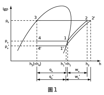 2、單位品質製冷量由q’o升高到qo,吸氣比體積由減小,單位溶劑製冷量增大。