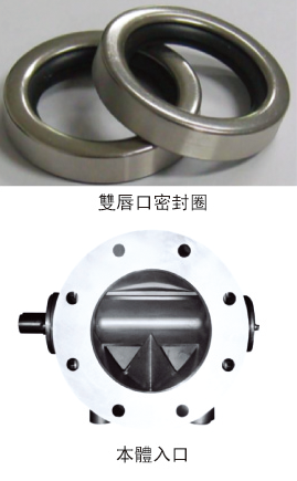 •軸封材採用雙唇口密封圈(材質:耐磨耗PTFE)、密封性能好使用壽命長