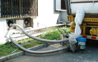 •從集裝箱車接收原料和通過空氣輸送至儲料桶,因為可移動,無論在任何地方都可以接收原料。不使用的時候,不需要固定作業場所