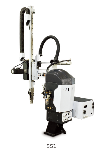 旋臂伺服機械手SS1系列為信易推廣的新產品,應用於連接器及LED類水口的取出。對於成型週期短,有快速取出水口要求的場合優勢明顯。同時,可以選配真空發生器及吸盤治具進行較簡單的注塑成型產品的取出任務,適用於鎖模力在250t以下的射出成型機。