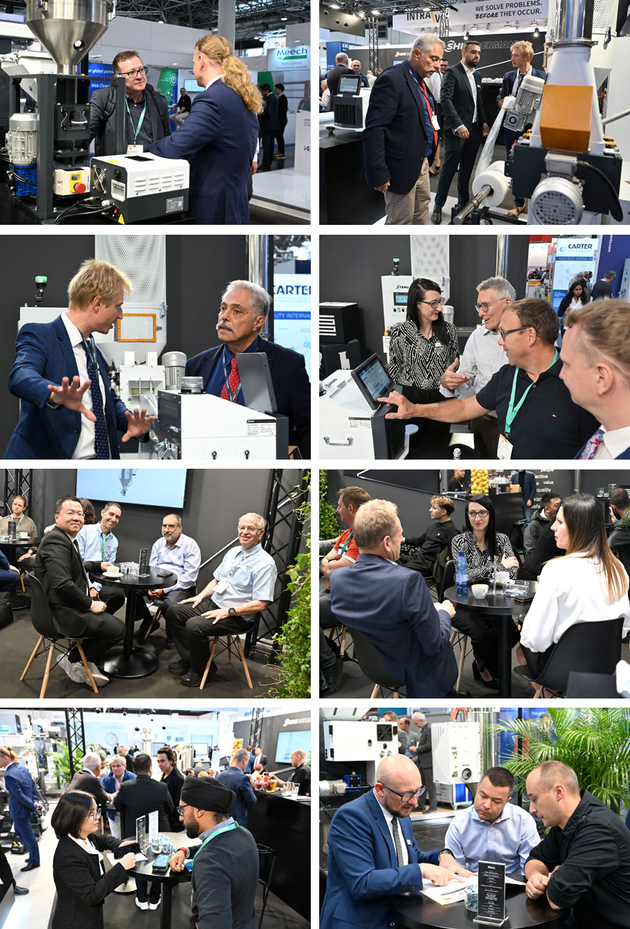 信易团队与客户开展了深入的技术交流,现场达成诸多初步合作意向,覆盖欧洲、美洲、亚洲、中东等重要市场。许多客户对信易产品的创新性和可靠性给予高度评价,特别是薄膜回收造粒机表现突出,获得了诸多访客的青睐。