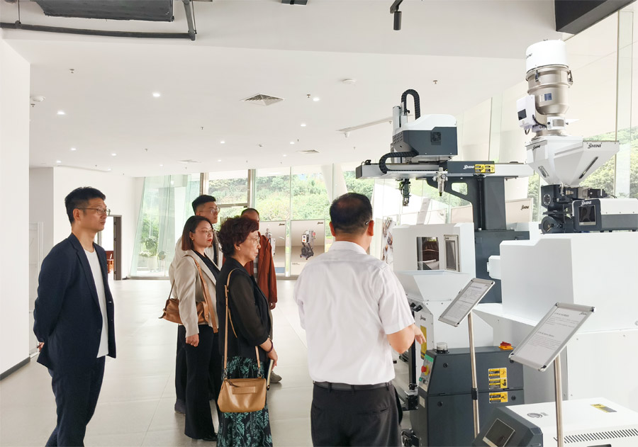 张教授一行在谢仲铭副理的陪同下参观了公司展厅,实时了解信易的发展历程、深入了解塑胶辅机设备,对我司在产品上的精益求精表示肯定。
