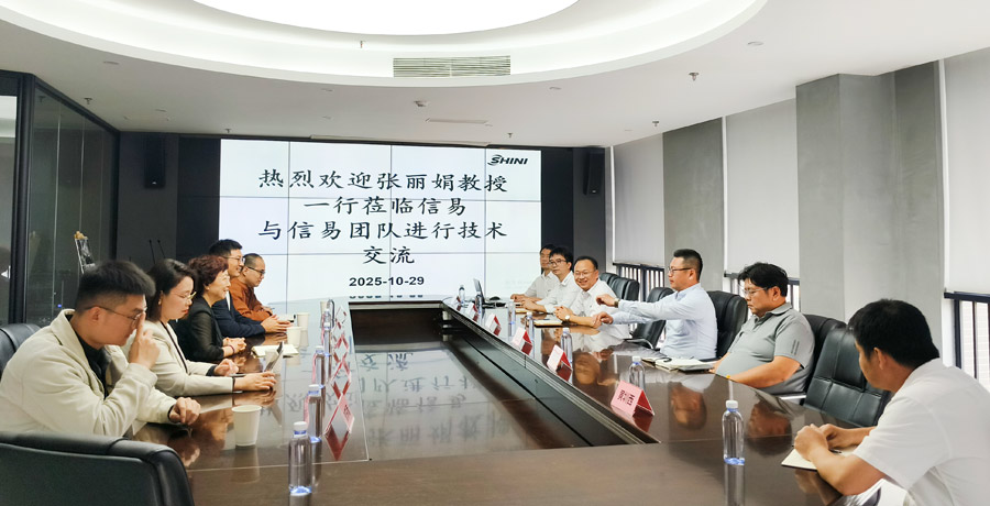 在随后的技术交流会议中,张教授充分肯定了信易在塑料辅机领域的技术实力和行业贡献,并与我司总经理吴峻睿及技术人员展开研讨,双方就行业新技术、新突破及未来发展方向进行了深入交流和探讨。