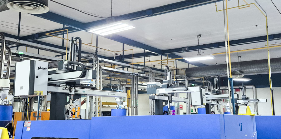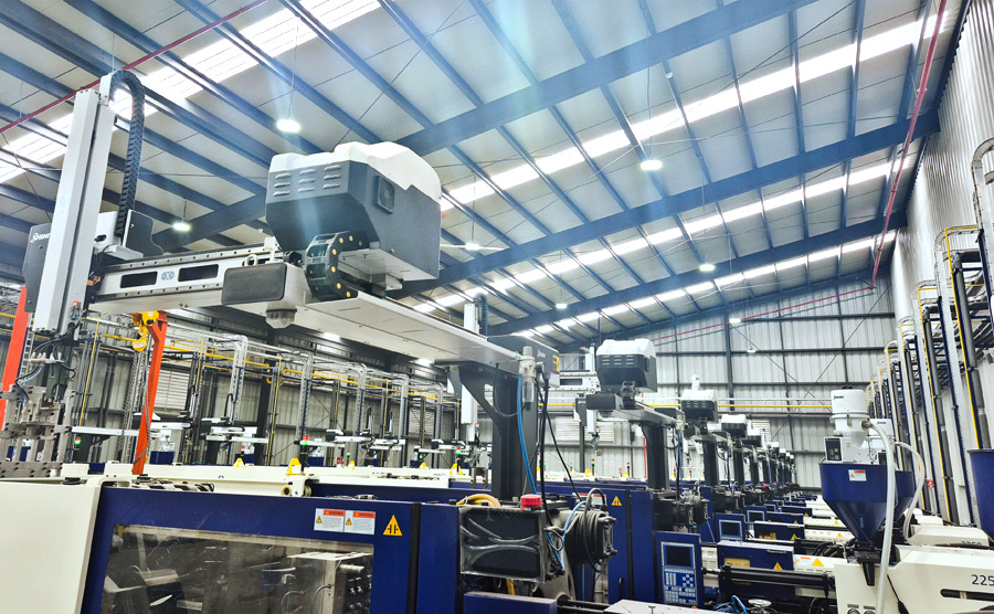 十多年以来,信易机械手、料斗干燥机、吸料机、拌料机及粉碎机等设备在客户工厂不停歇地运转,为客户在当地市场跻身前三提供了坚实基础。在当地员工流动率高达10%以上的市场环境中,信易设备的稳定性和耐用性为客户提供了持续的生产保障。特别是信易ST3全伺服横走式机械手在生产线上发挥着关键作用。这些机械手采用新型插卡式驱控一体技术,实现了机箱小型化,线缆优化减少,便于维护且故障率低。