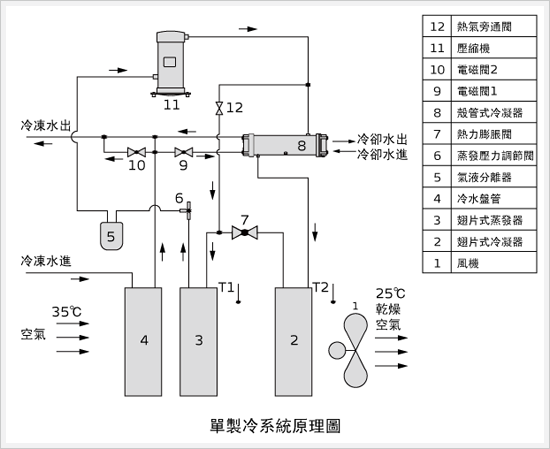 由以上可知,現除濕機使用的主要以冷凍式和蜂巢轉輪式為主。下列將對冷凍式除濕機進行簡單分析。