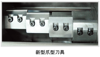 •採用新型爪型刀具,免調式活動刀片設計,活動刀片重磨後不需經過間隙調整,仍然保持固定的切割間隙
