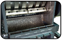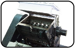 低切點型固定刀起始切點低,設計的粉碎室餵料空間很大,加上固定刀起始切點低,被切材料能迅速地抓住被切碎所以此種機型適用於粉碎大空心殼材料和框架材料。